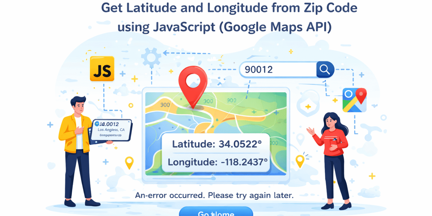 In this article I will explain with an example, how to get Location Coordinates i.e. Latitude and Longitude from Zip Code (Pin Code) by making use of Google Maps API V3 (Version 3) and JavaScript.